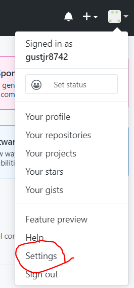 그리고 오른쪽 위에 사용자 아이콘을 클릭 후 Settings 버튼을 선택한다.