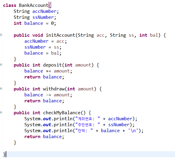 앞서 정의한 BankAccount 클래스를 다시 보면,