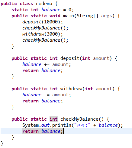 인스턴스 메소드 => public int deposit(int amount) ...