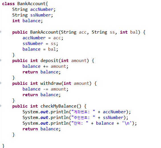 앞서 정의한 BankAccount 클래스를 다시 보면,