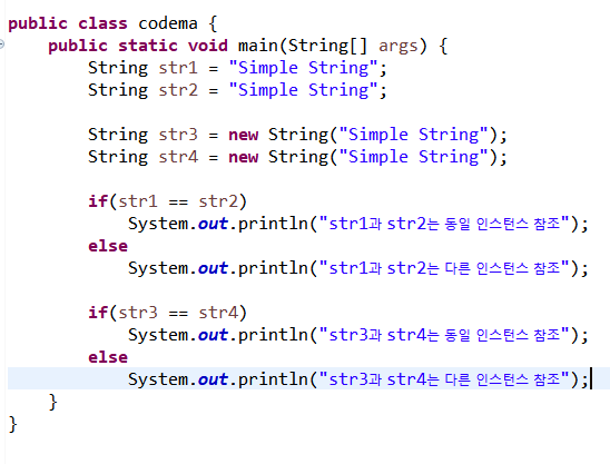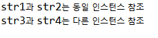 따라서 예제는 str1과 str2가 같은 인스턴스이고, str3와 str4는 다른 인스턴스임을 알게 해준다.