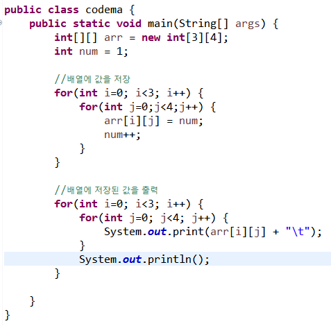 int [][] arr = new int[3][4]; // 세로와 가로의 길이가 각각 3,4인 2차원 배열 생성
