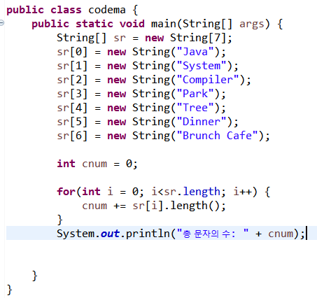 String형 배열에 문자열을 저장하고 참조하는 코드를 보자.