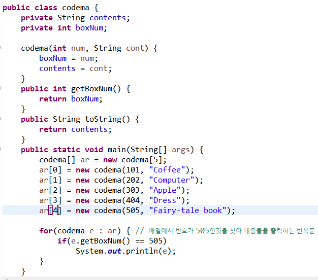 "이는 codema 인스턴스 5개를 저장할 수 있는 참조변수의 배열이다."