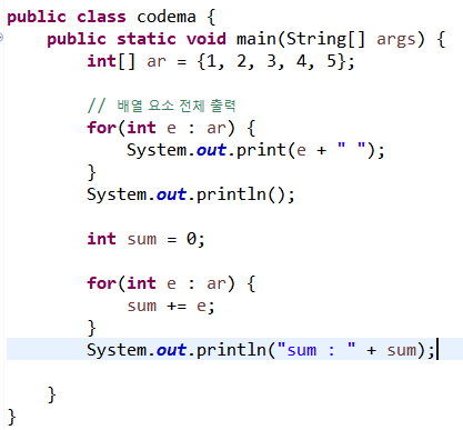 프로그램을 작성하다 보면 다음과 같이 배열에 저장된 모든 요소를 대상으로