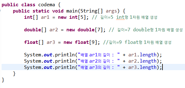 int[] ar = new int[10]; // 배열의 모든 요소 0으로 초기화